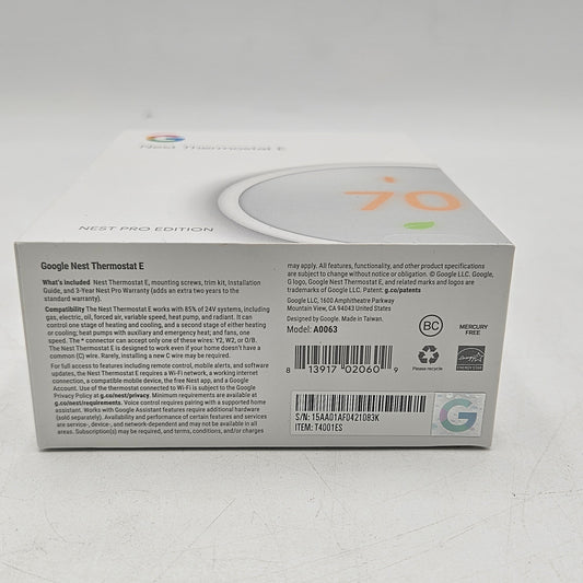 Google Nest Thermostat Smart Thermostat White A0063